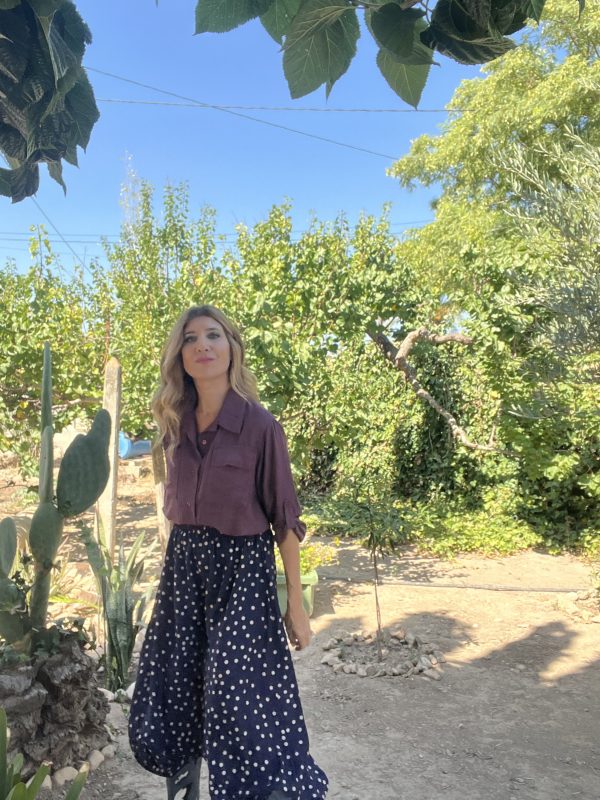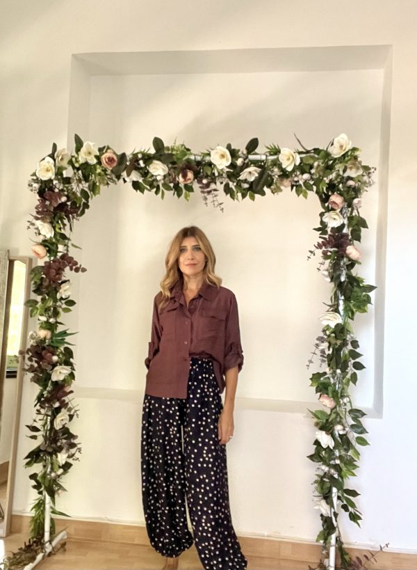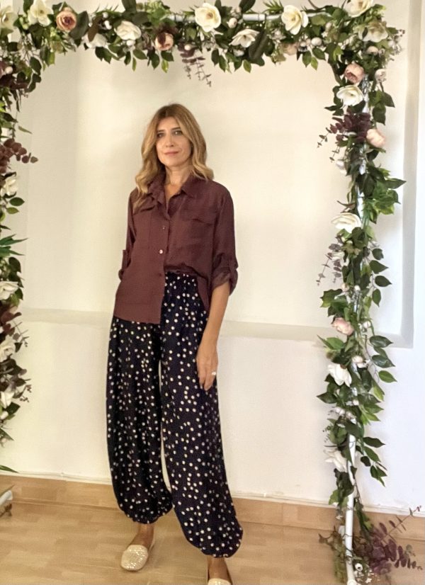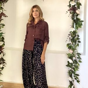 Blusa manga larga, que se puede remangar, color burdeos, bolsillos solapa en la parte delantera, cuello solapa, botones delanteros, talla desde 34 hasta 42