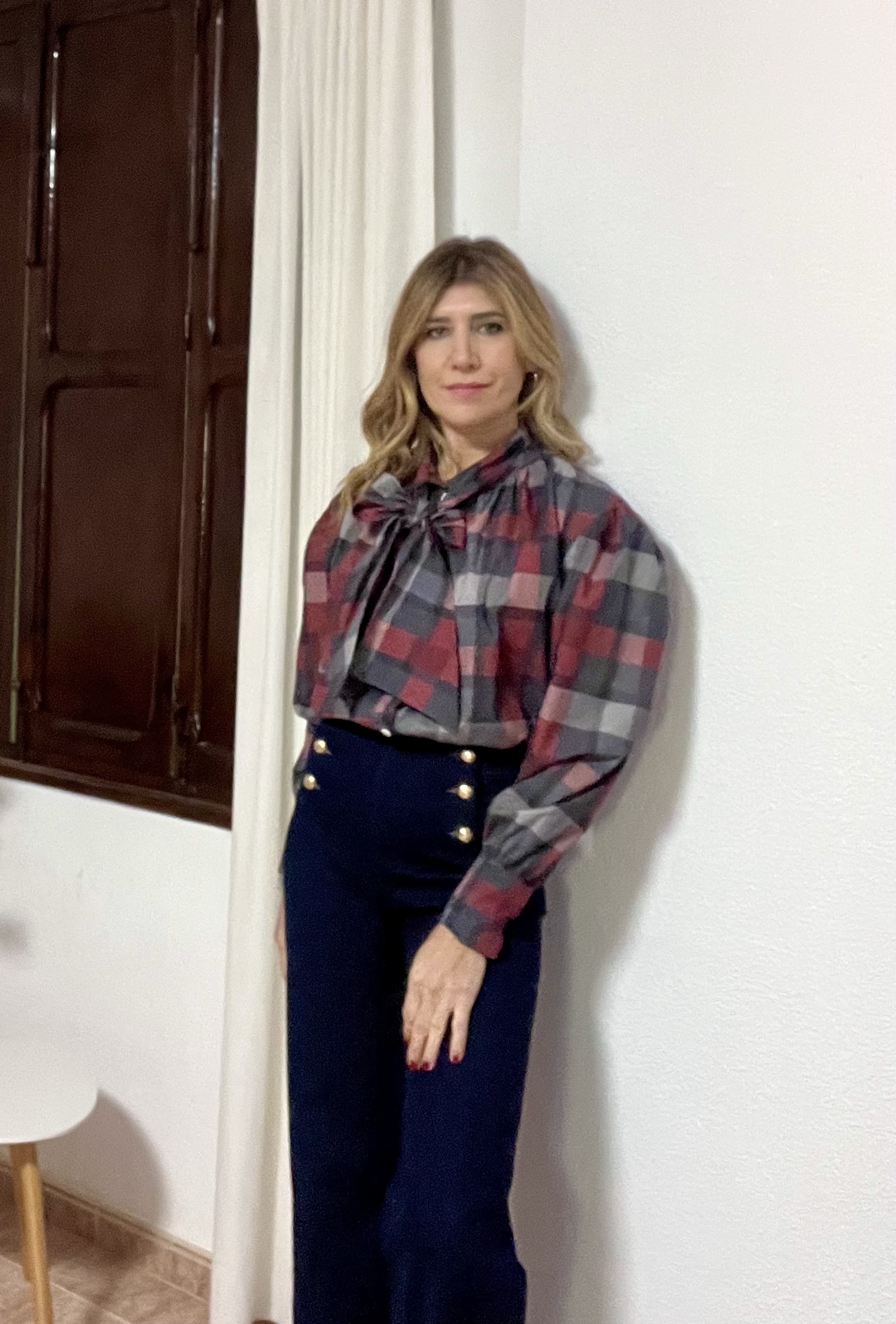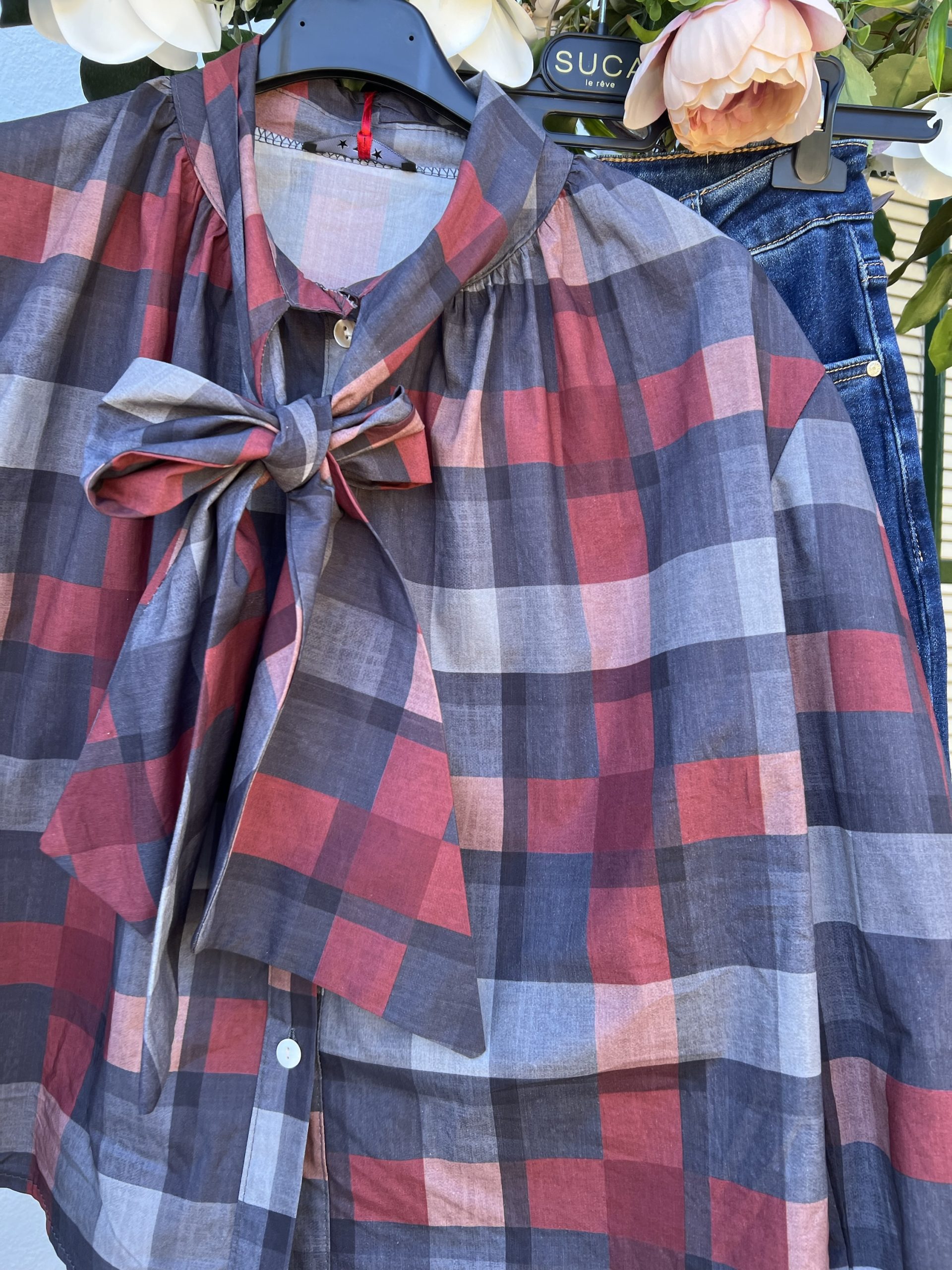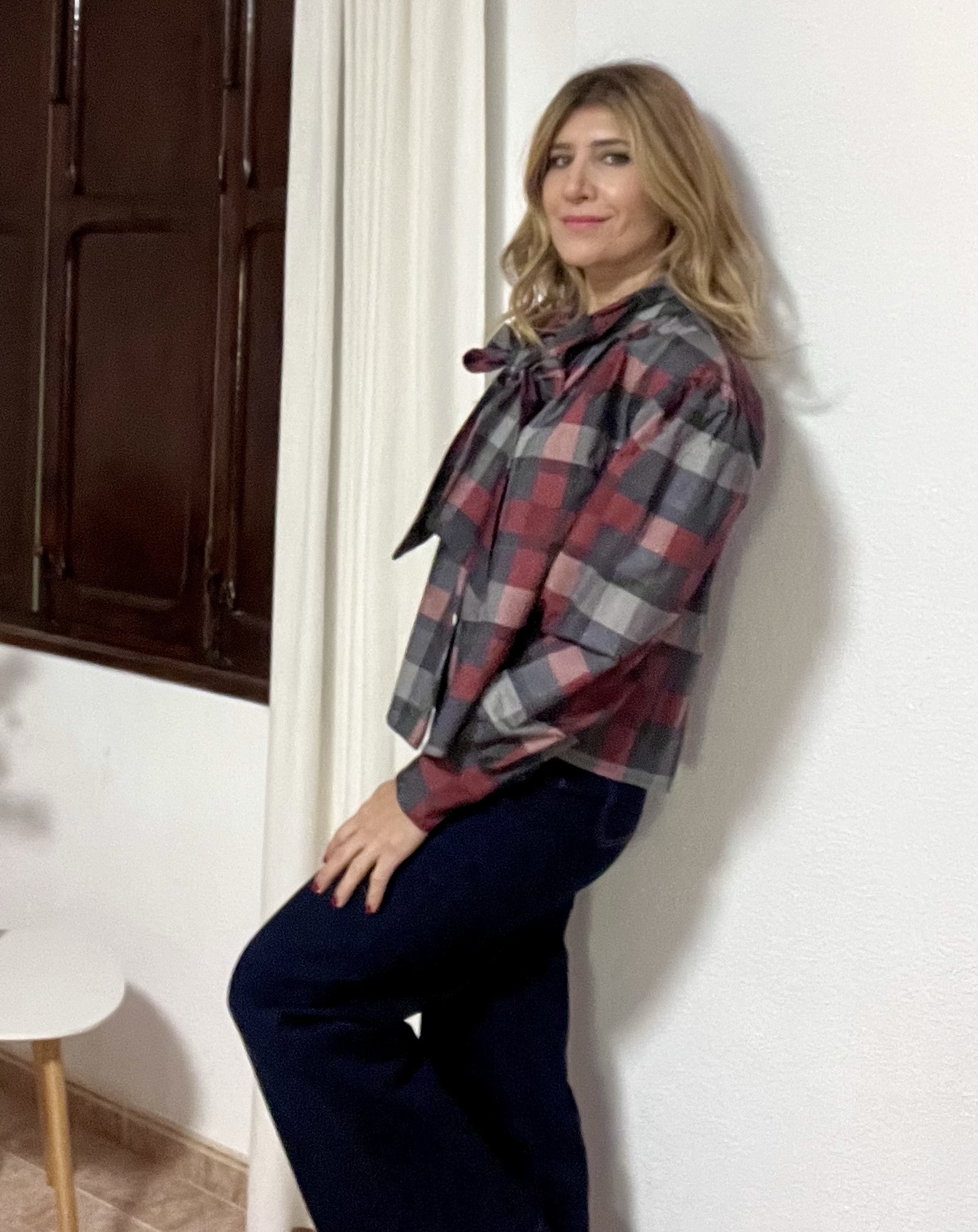 Blusa cuadros con lazado cuello