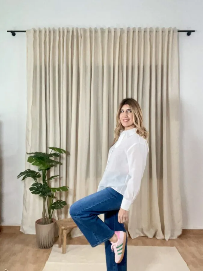 Camisa Silvia blanca botones forrados