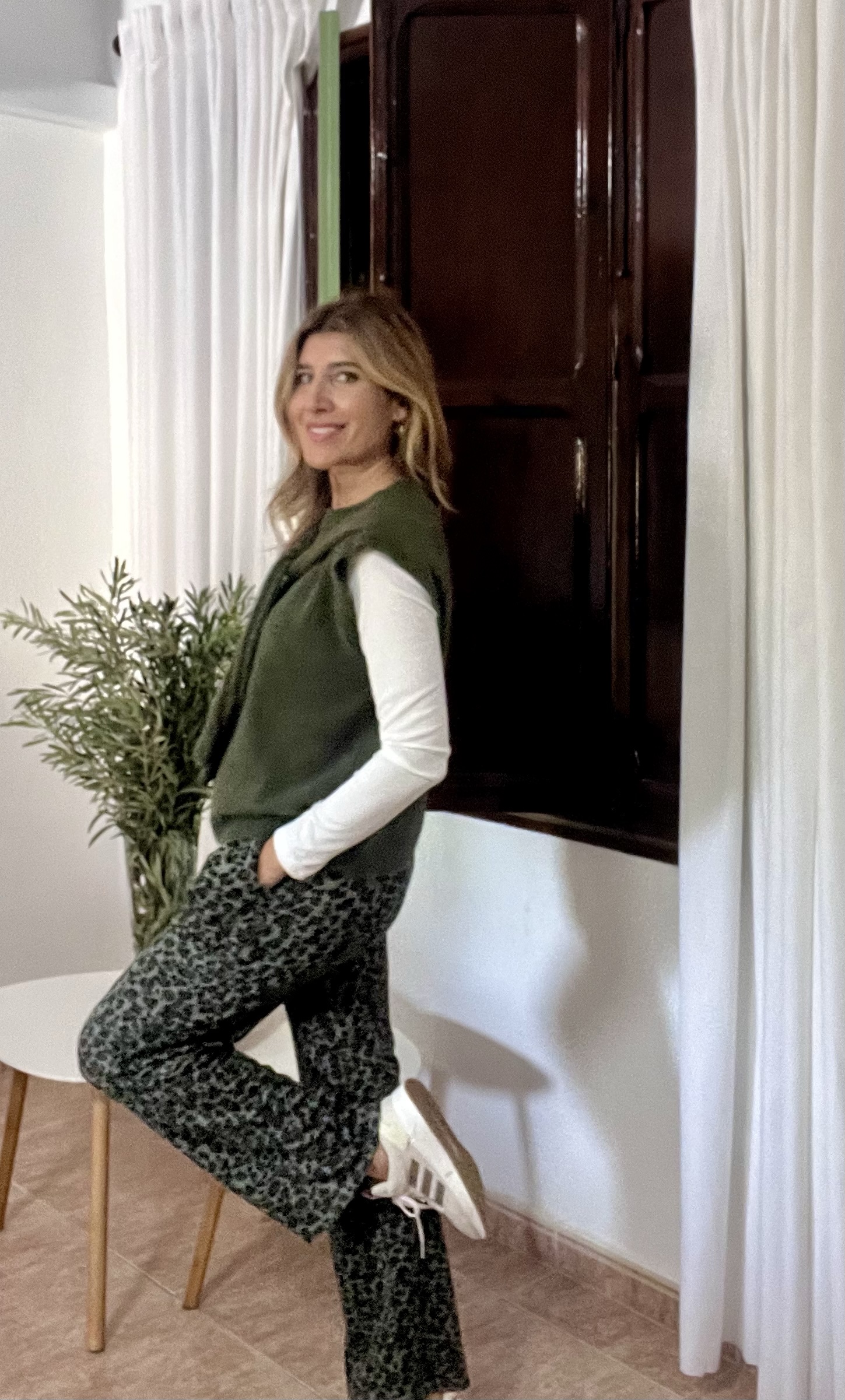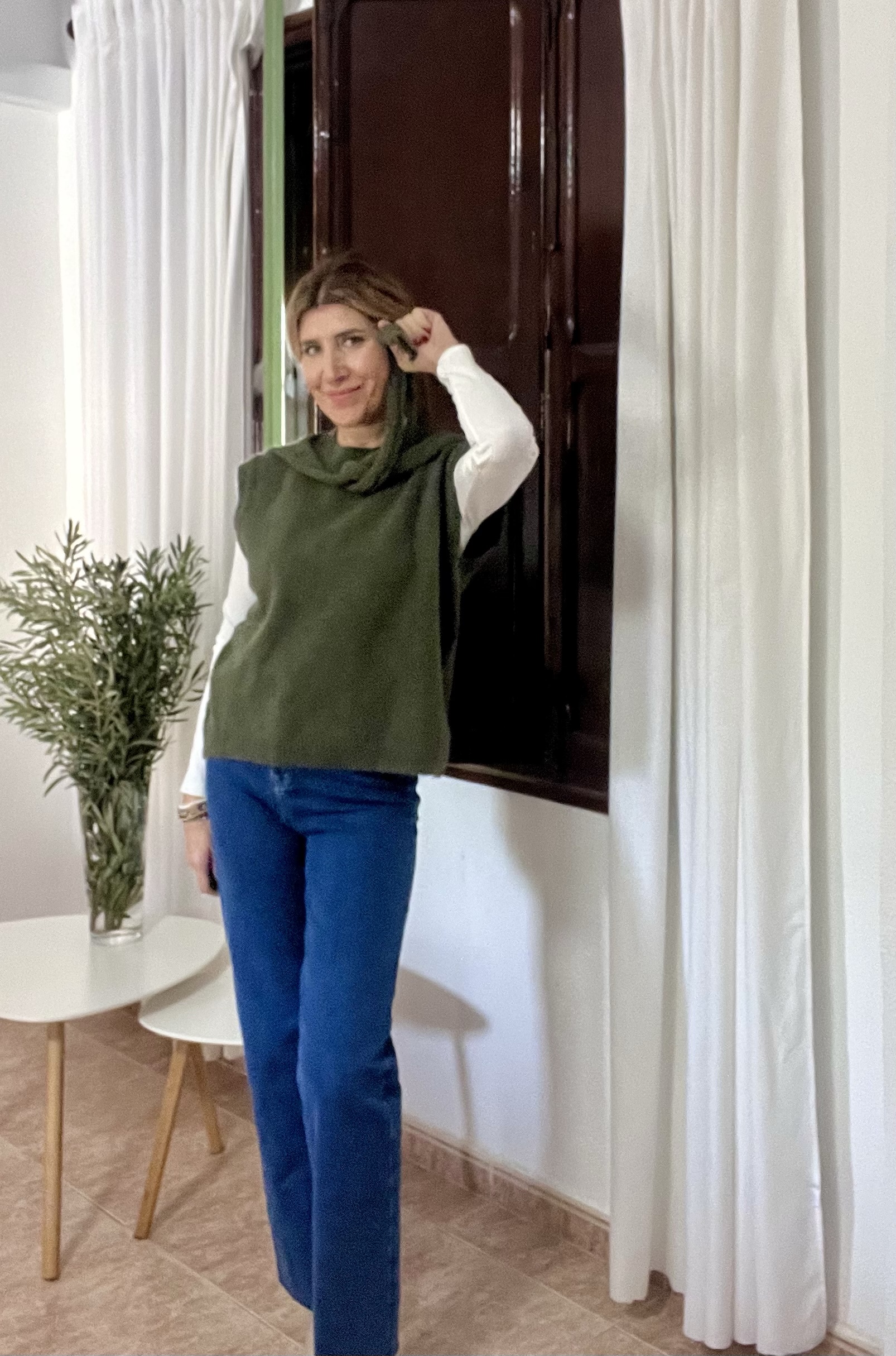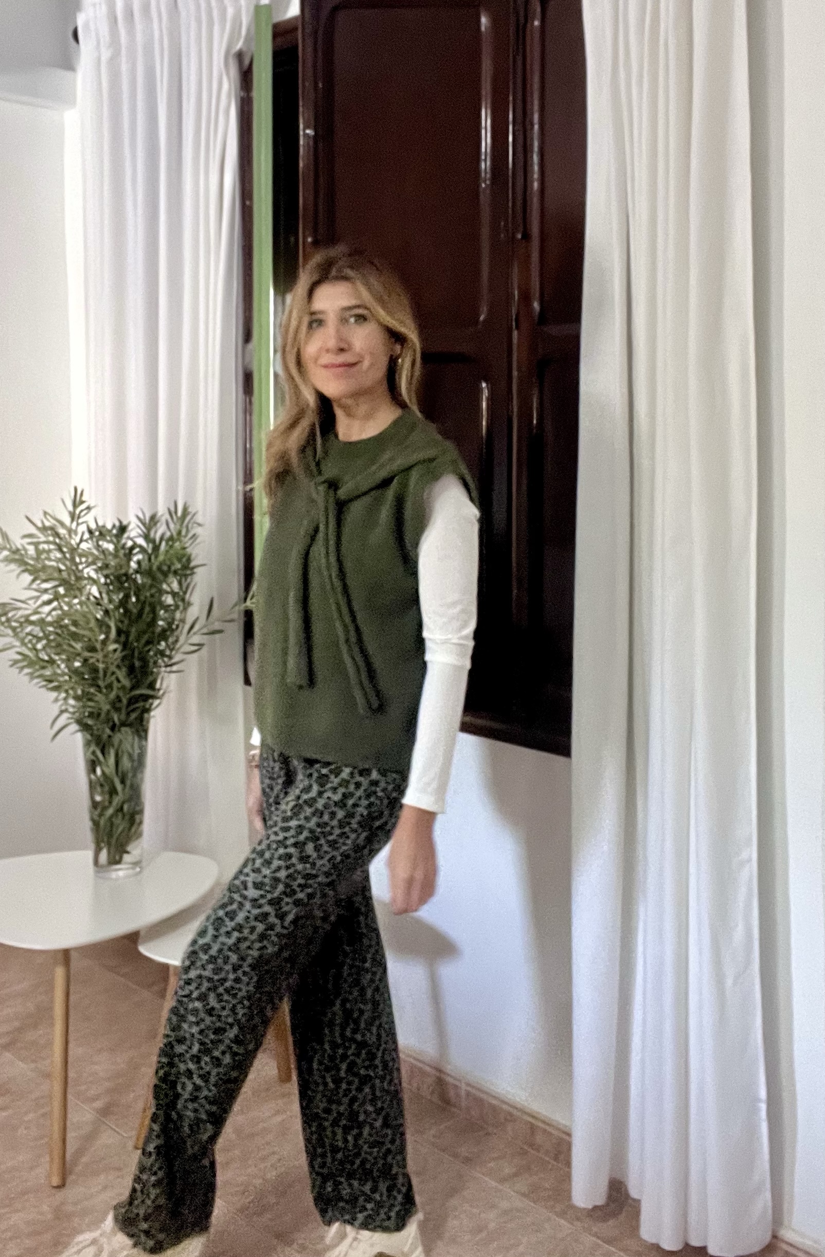 Chaleco punto detalla lazo en la parte de alante color verde kaki