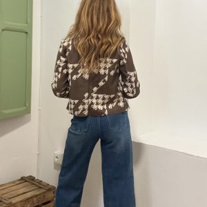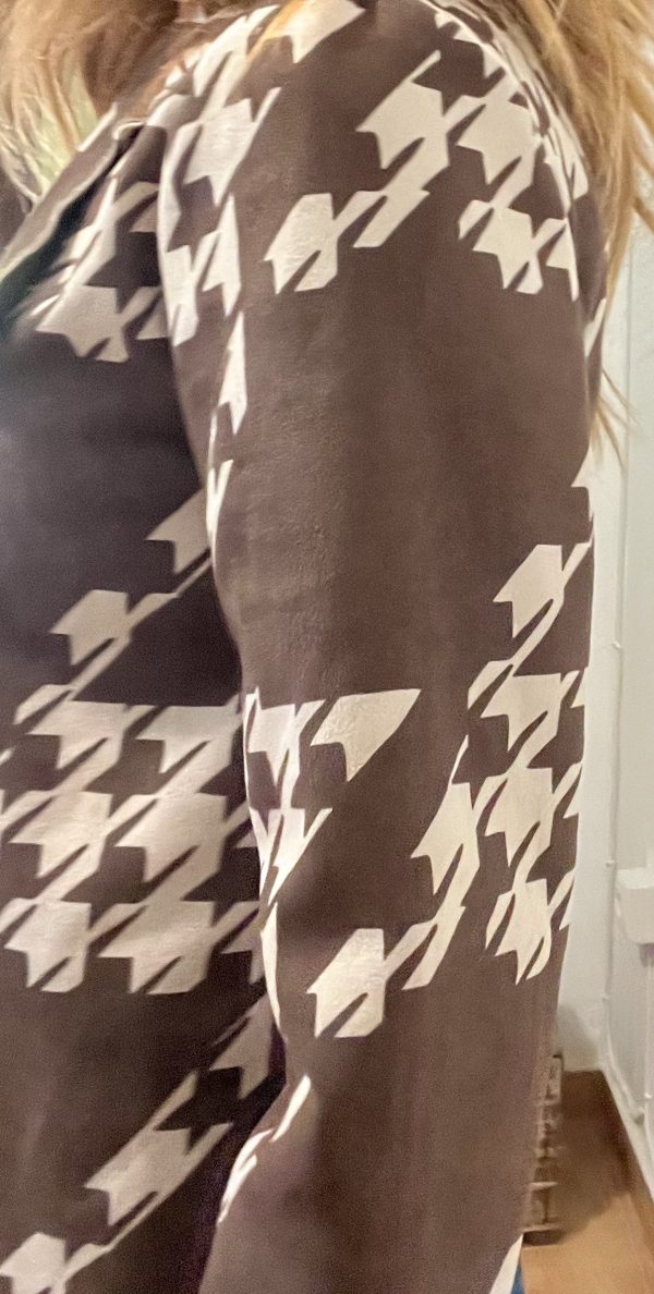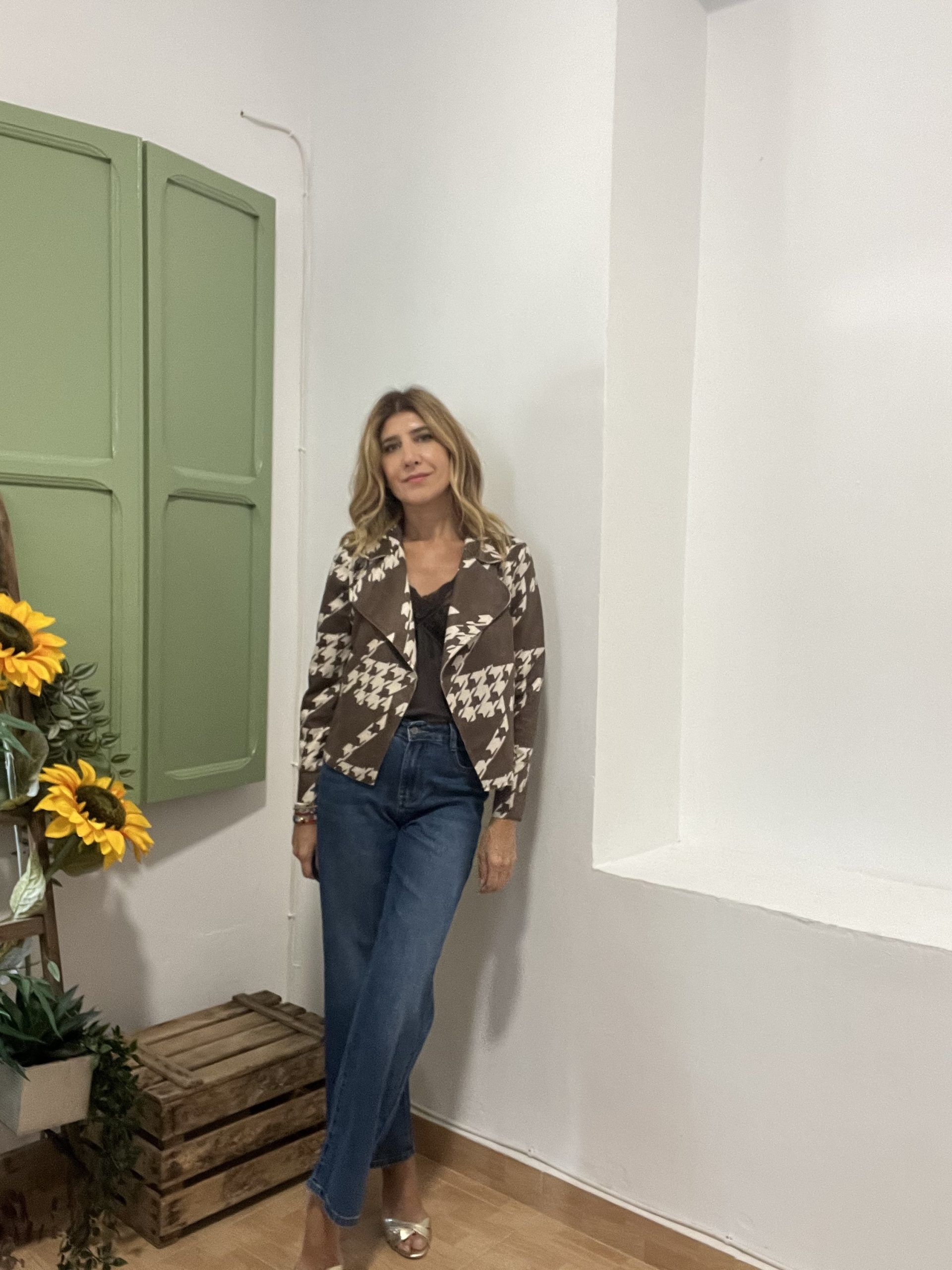 Chaqueta suelta, no se abrocha, es de antelina, talla única, de brazo es estrecha