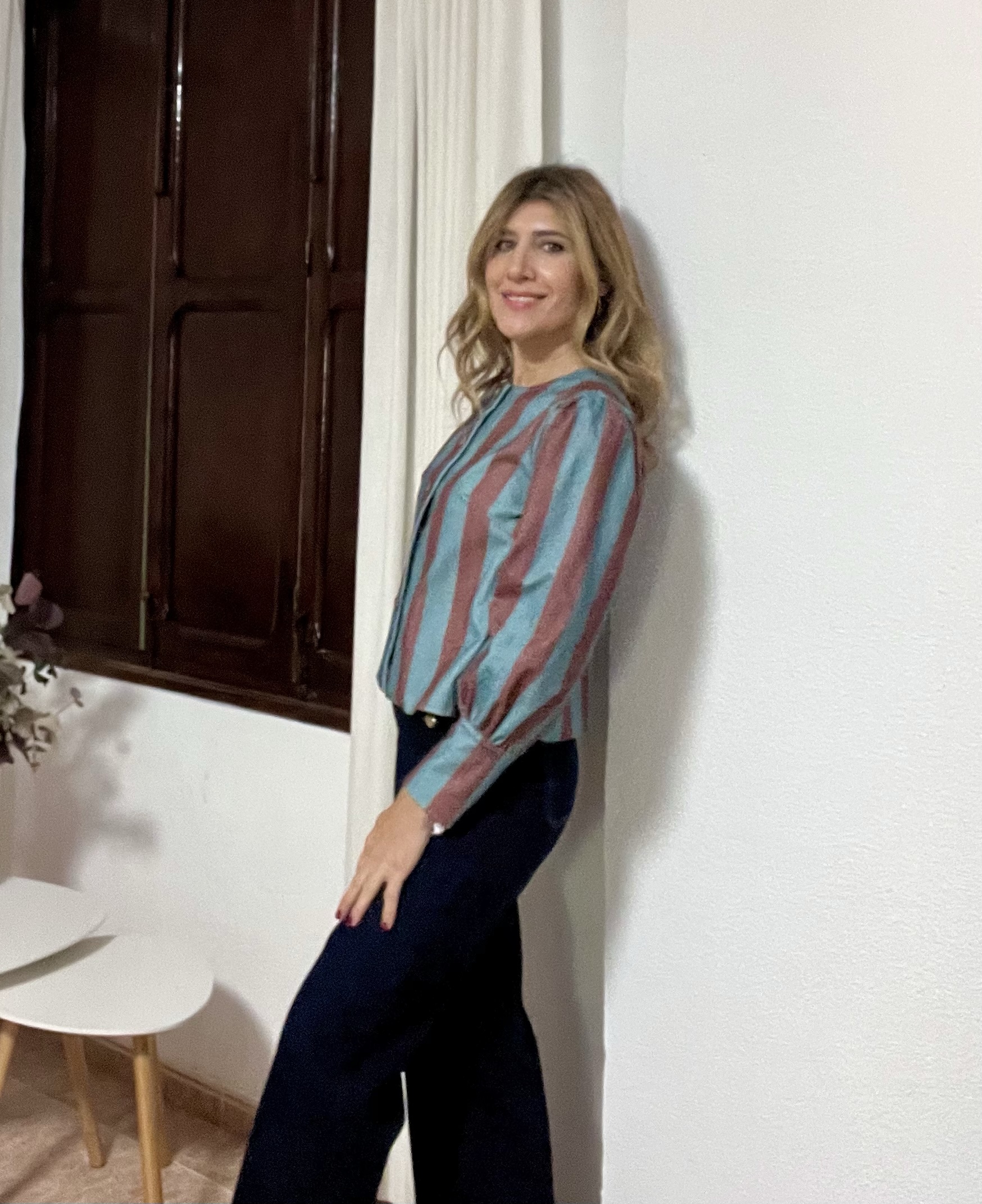 Camisa tipo blusa con raya finita