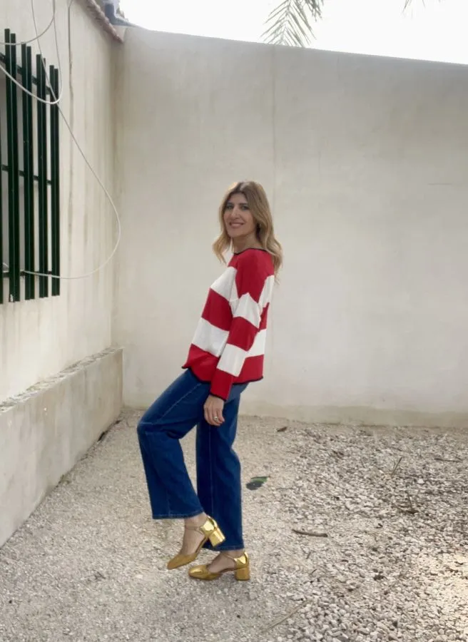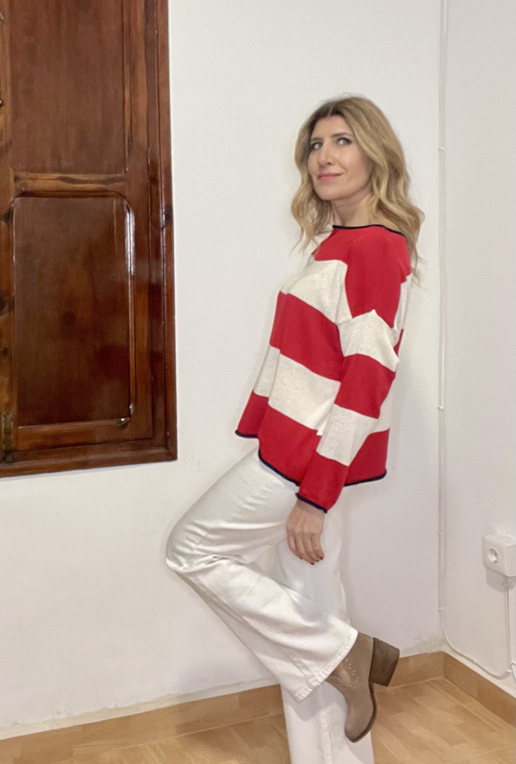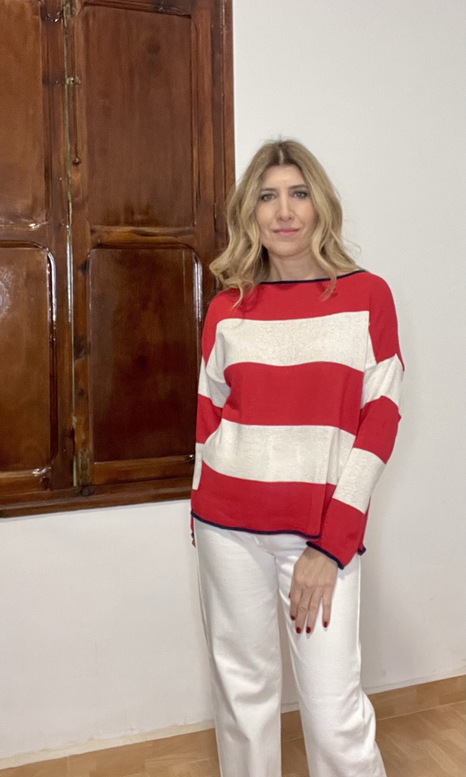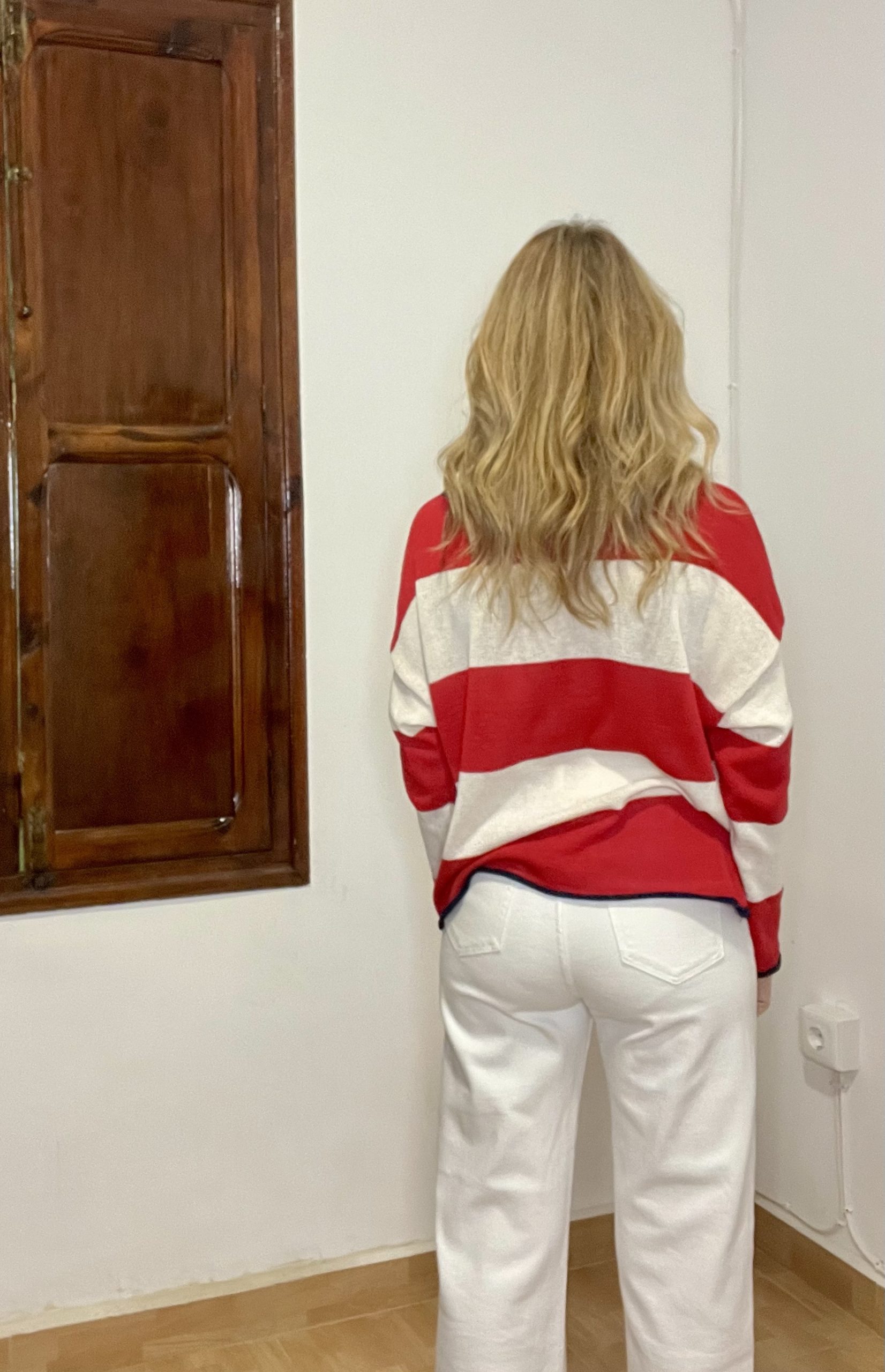 Jersey Alba, de rayas anchas en rojo con color blanco