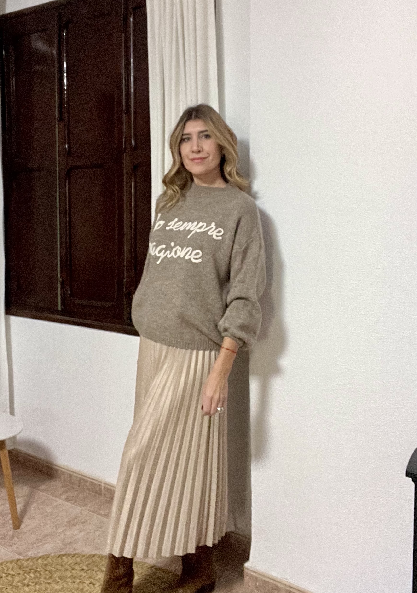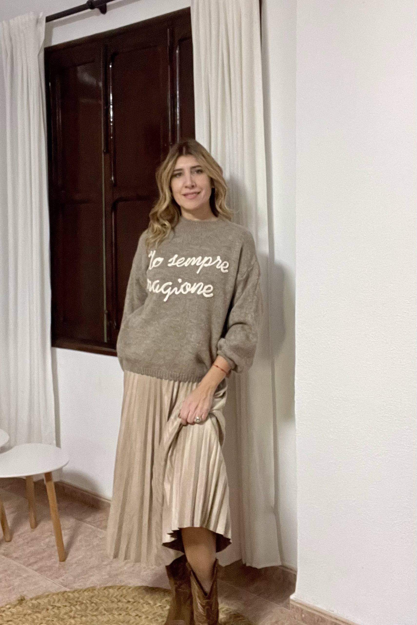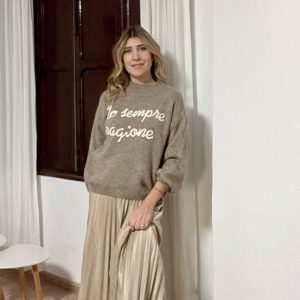 Jersey color beig con letras en color blanco