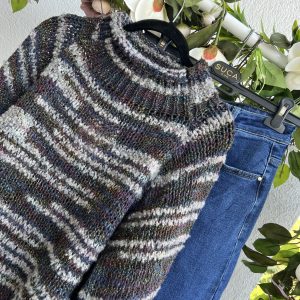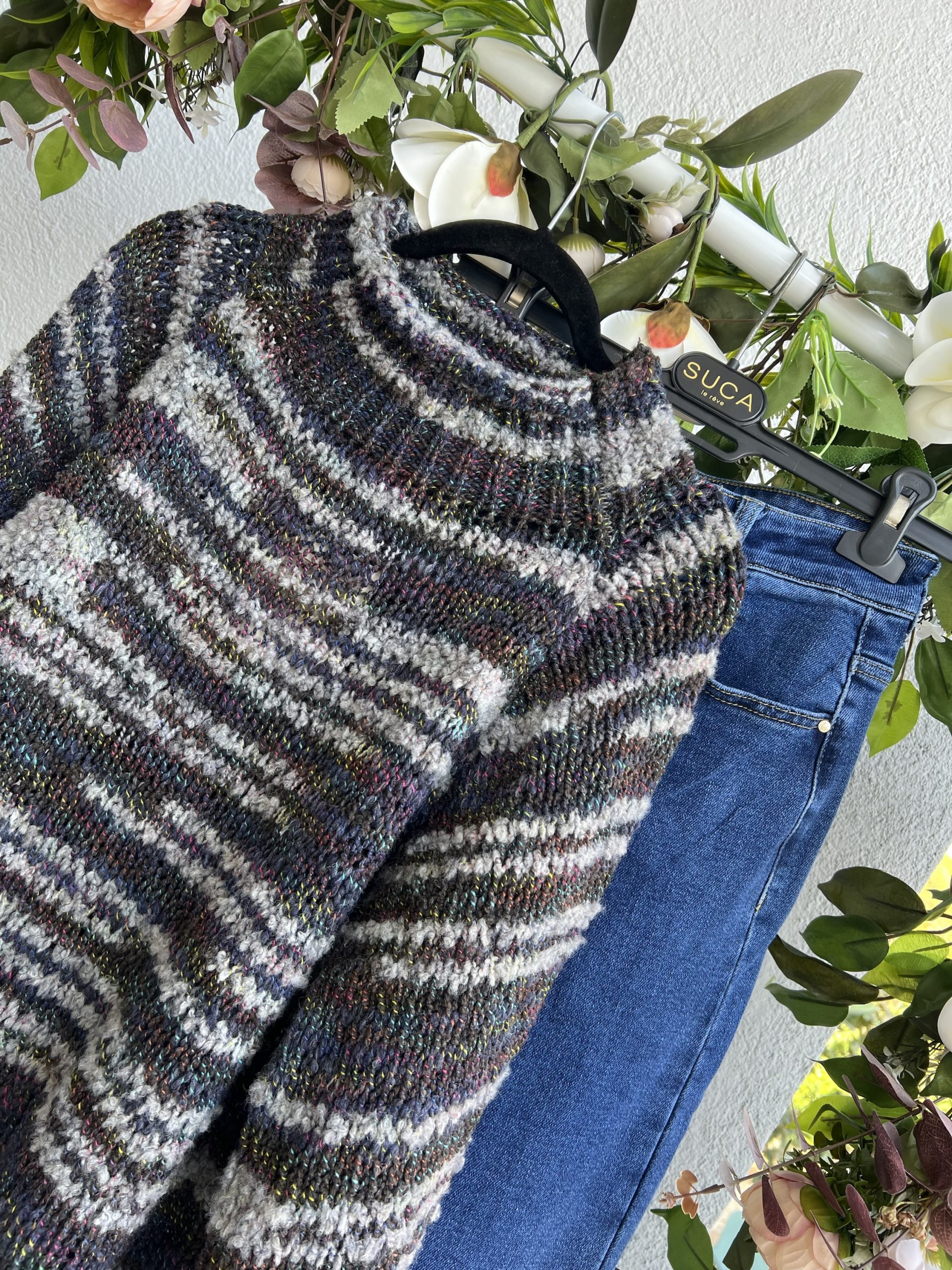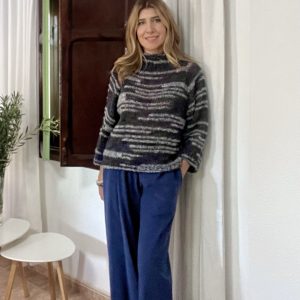 Jersey multicolor en tonos azules, es manga francesa, no llega a ser larga del todo.
