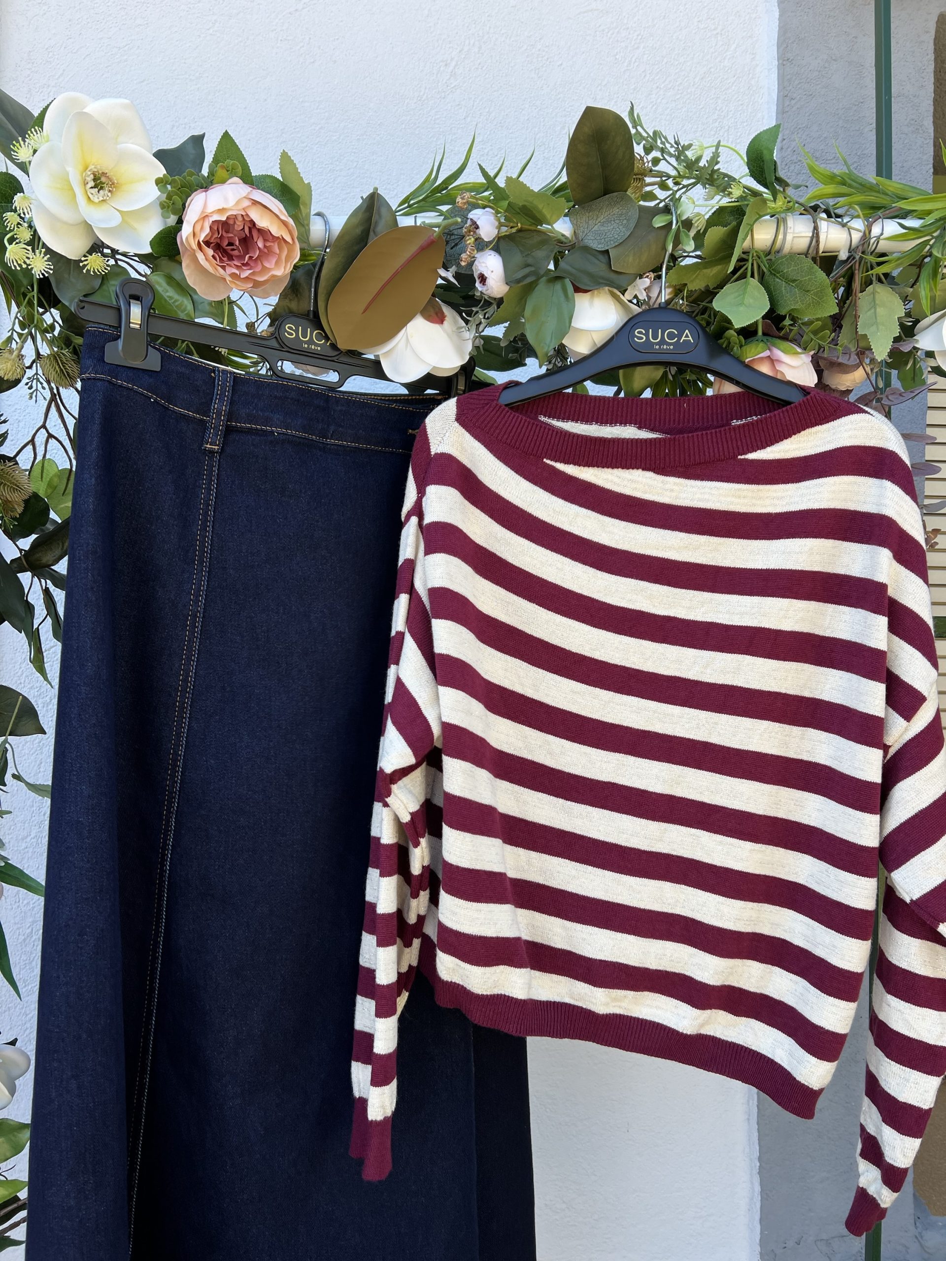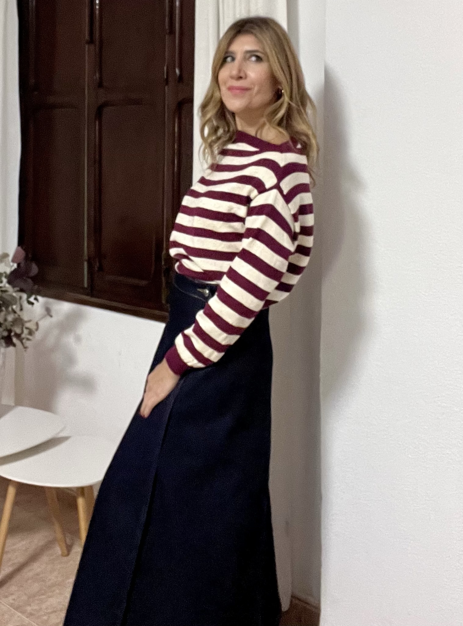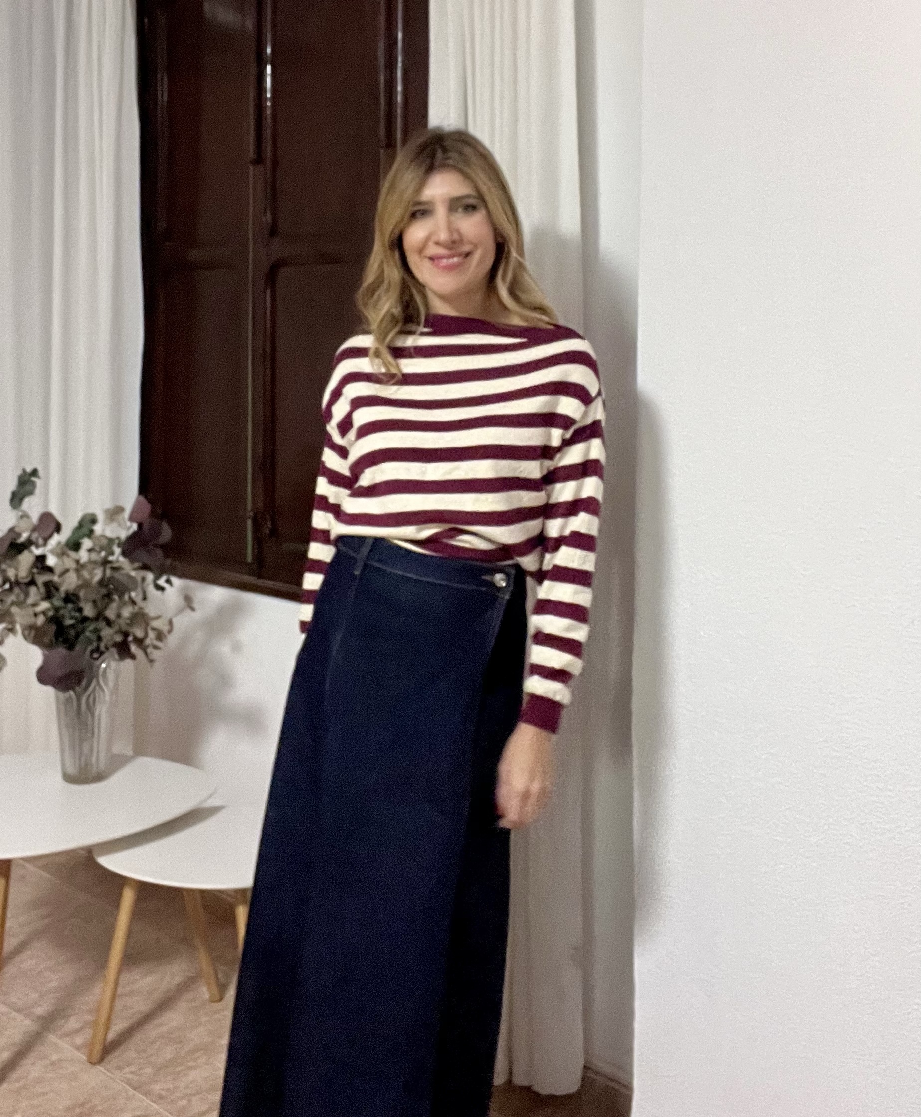 Jersey rayas color granate con raya en lurex dorado