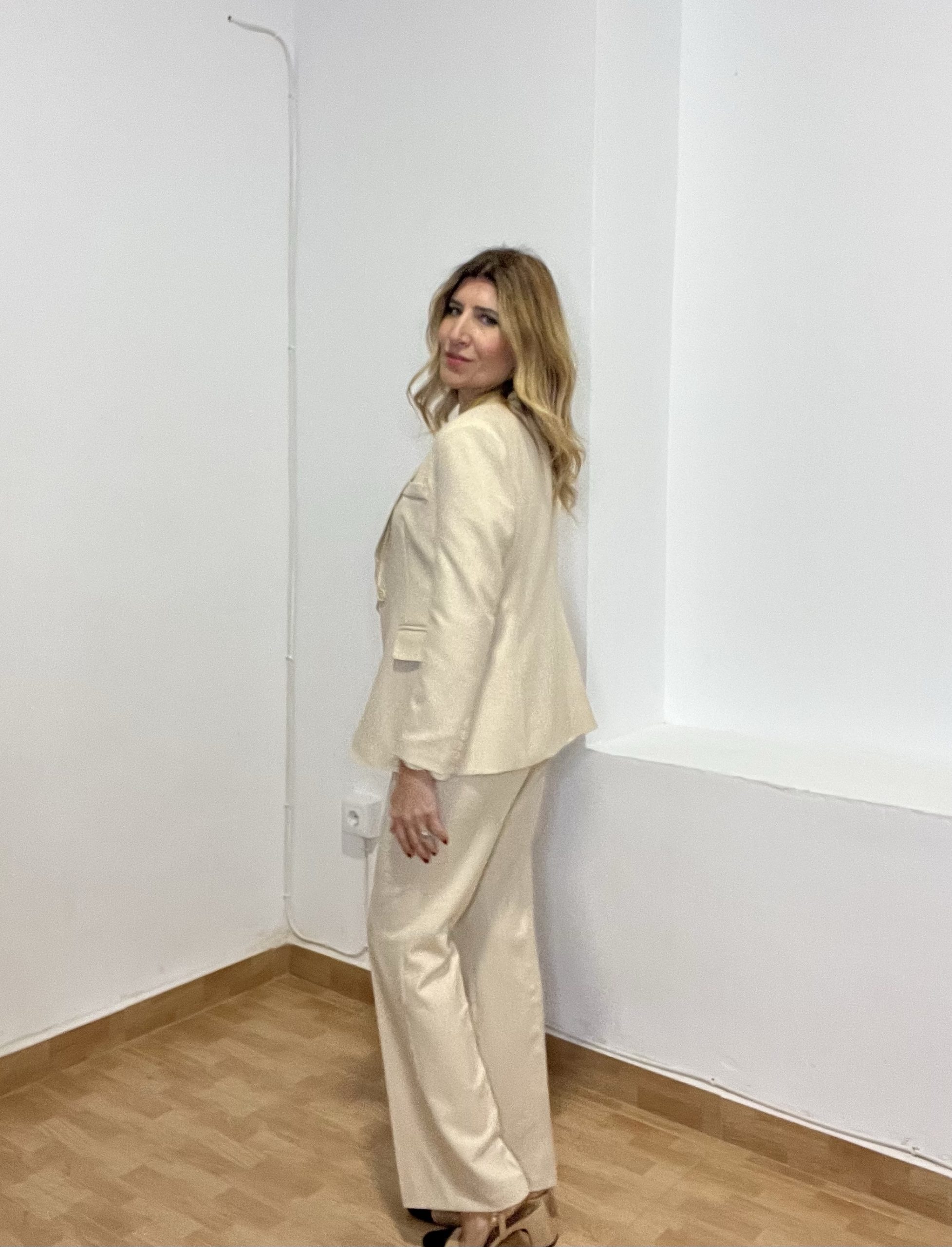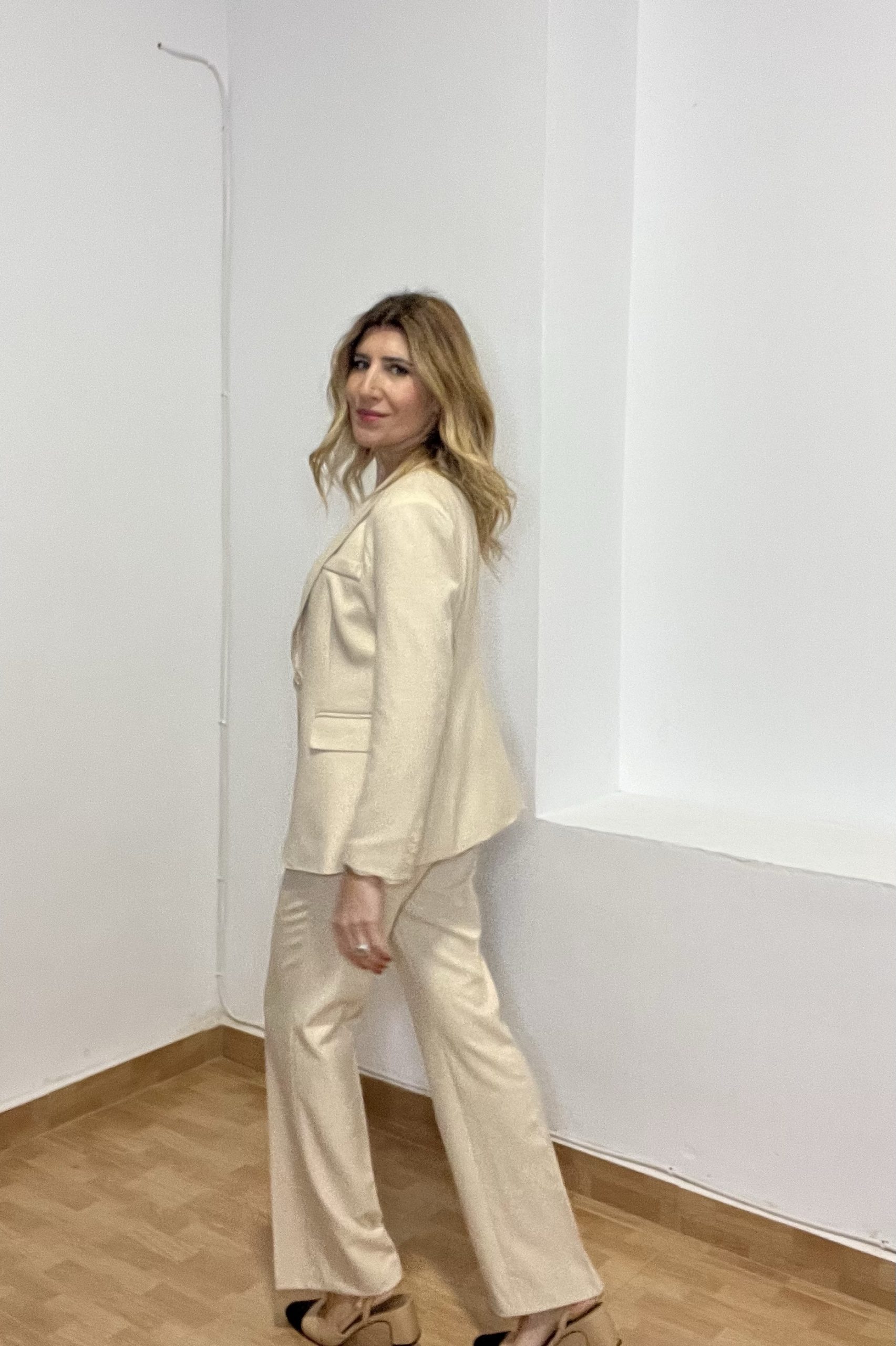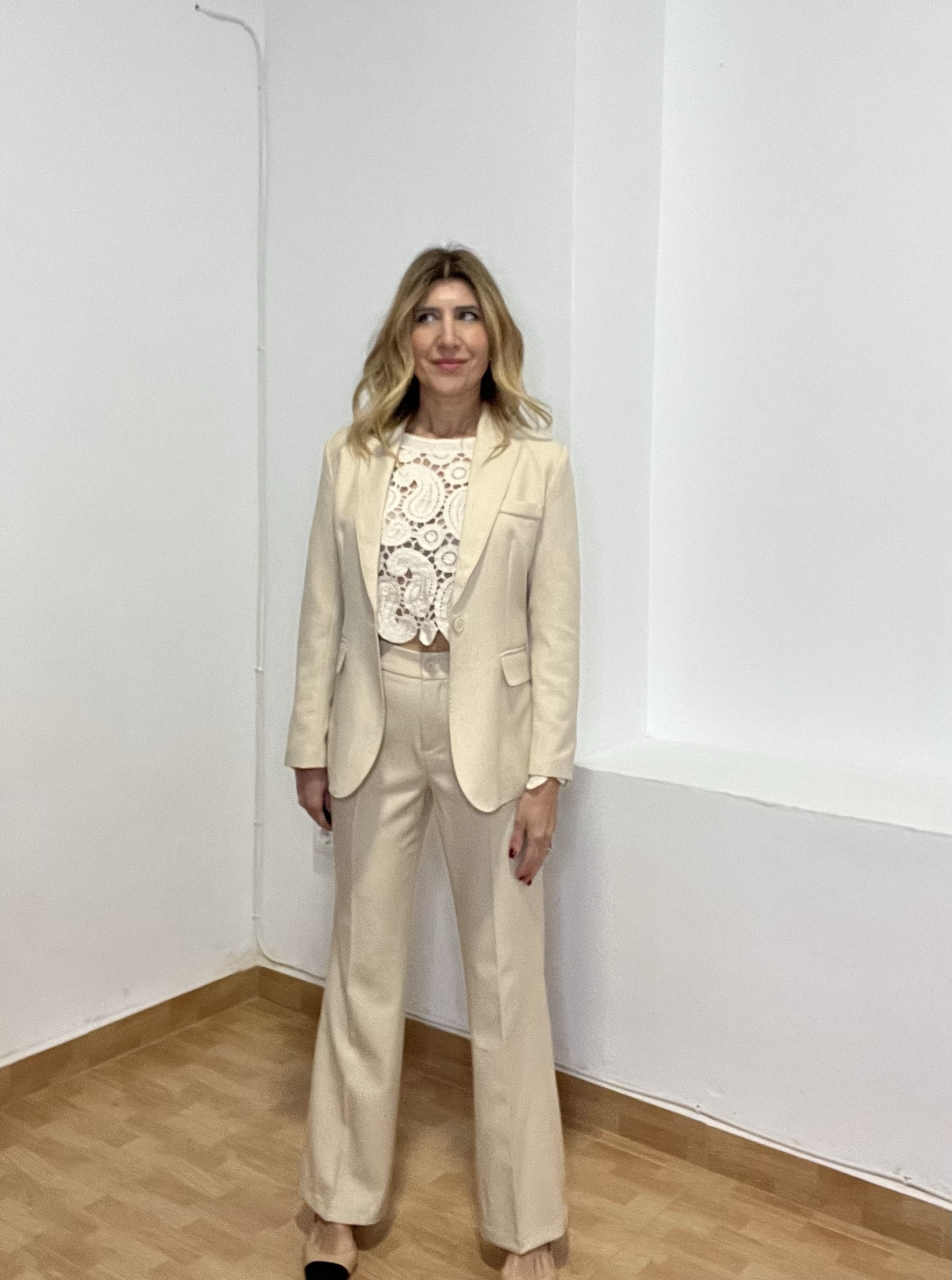 Bolsillos laterales. Cierre botón con cremallera delantero.