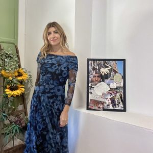 Vestido tul flores, hombros descubierto, de gasa, es largo, lleva forro, la manga queda transparente