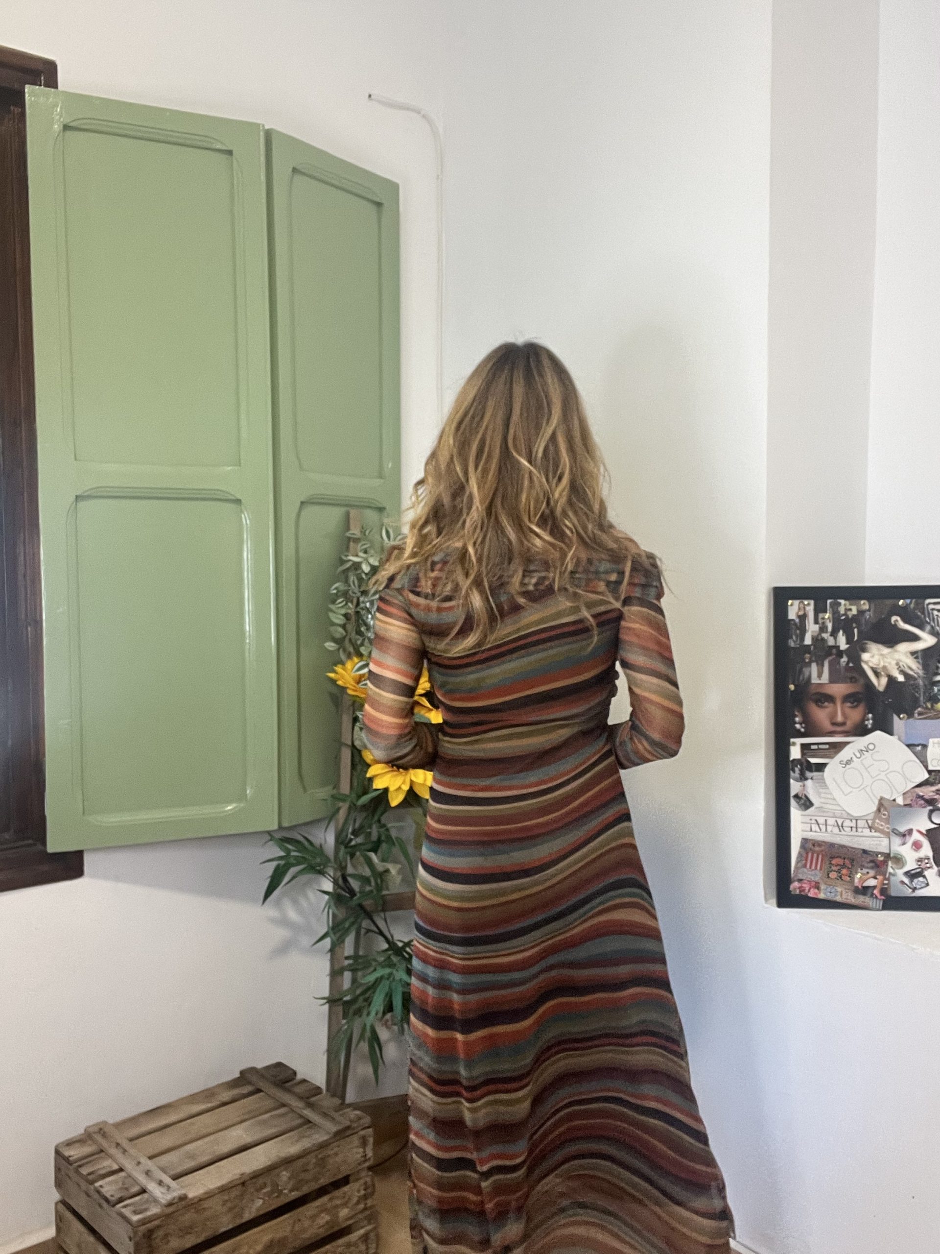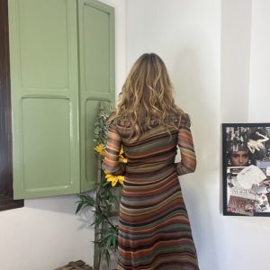Vestido tul, hombros al descubierto, rayas, talla 34-38